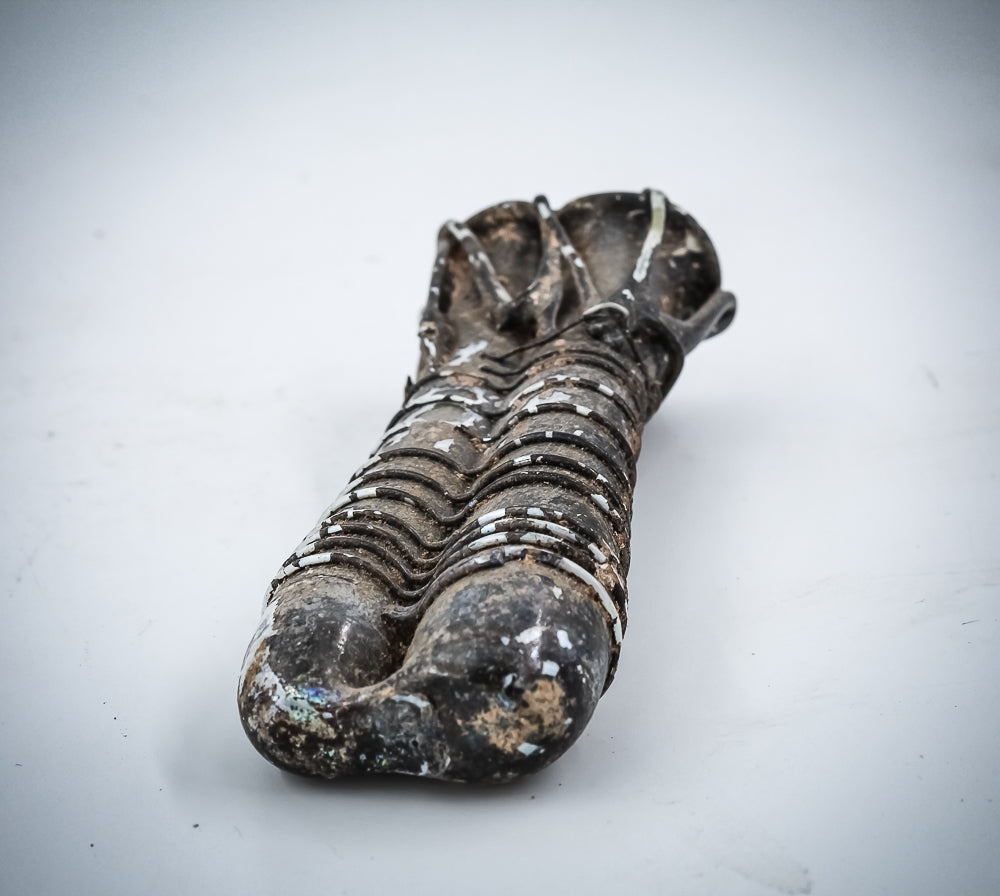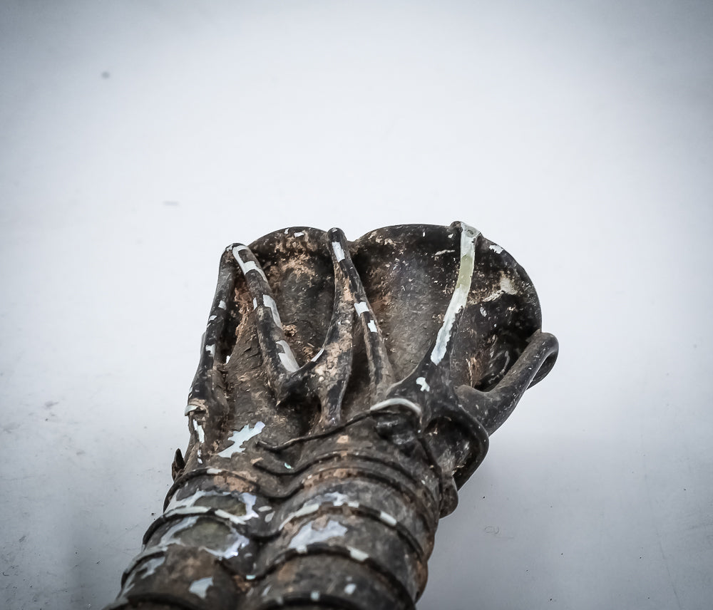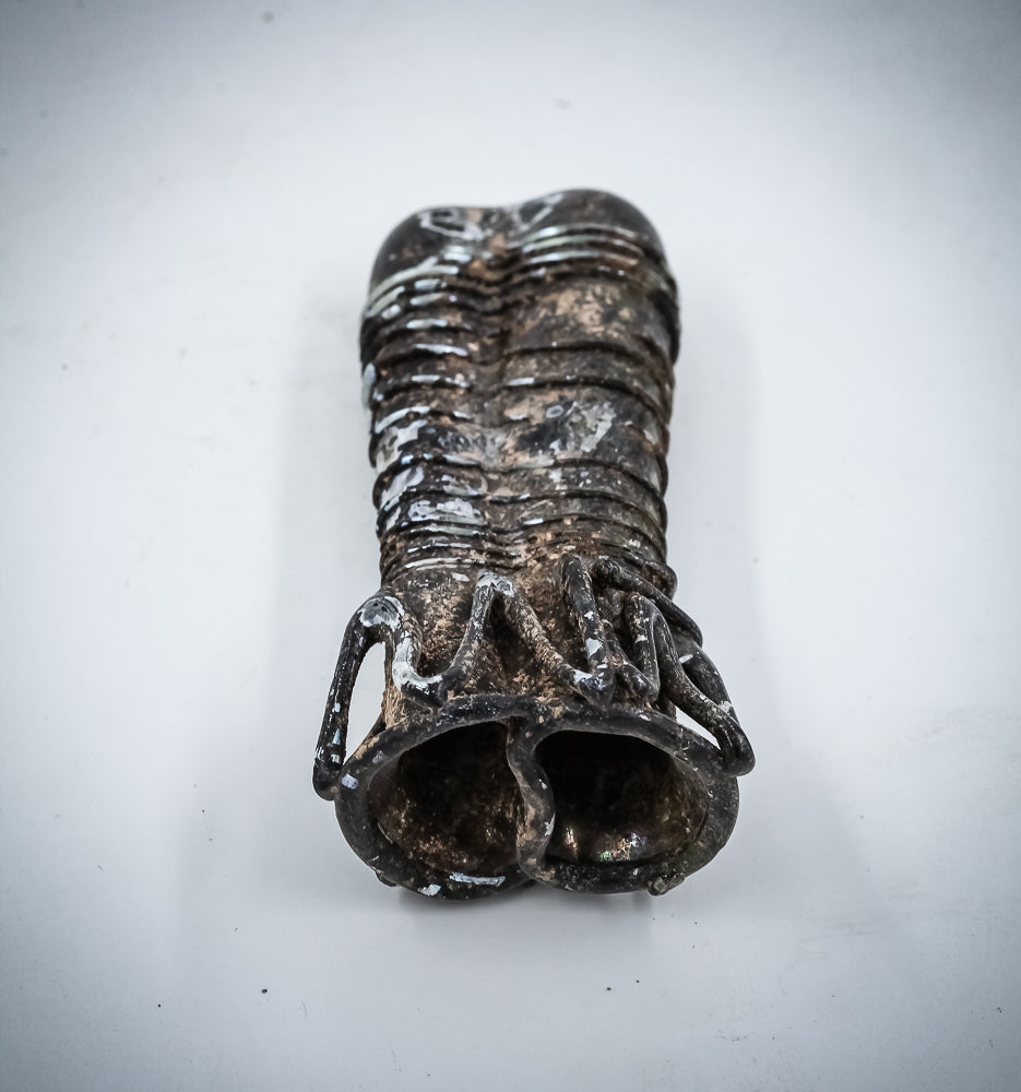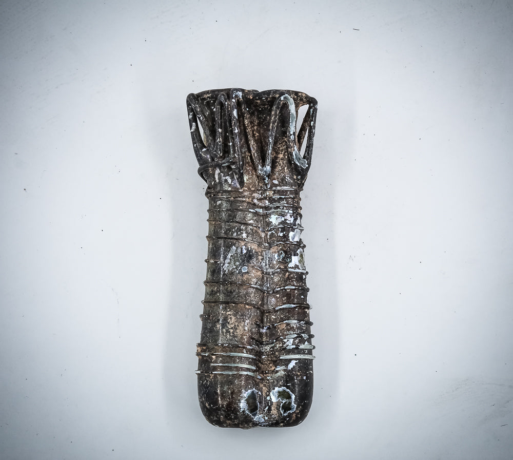 This glass bottle for applying cosmetics features two compartments for a long ivory applicator. It includes a certificate of authenticity and all necessary export documents. Shipped directly from the Holy Land, it has a beautiful dark patina.