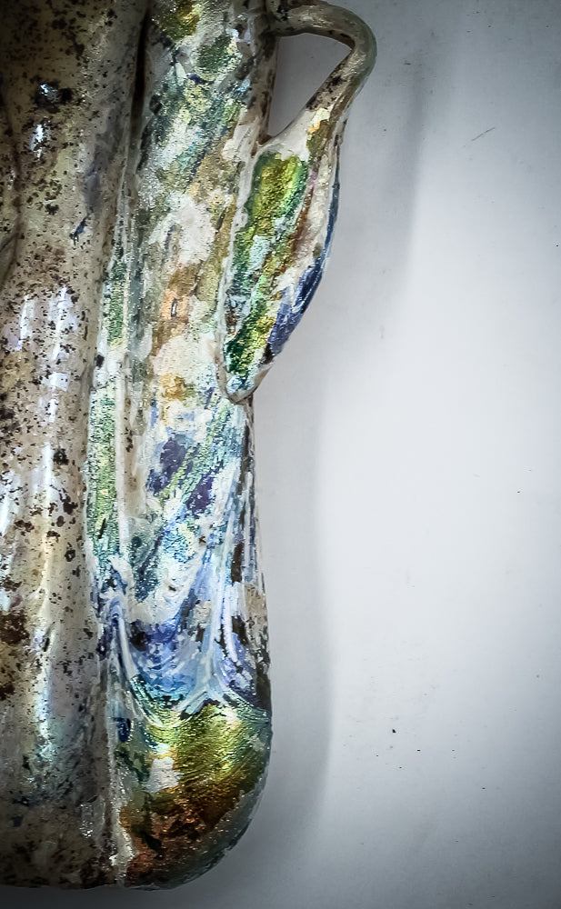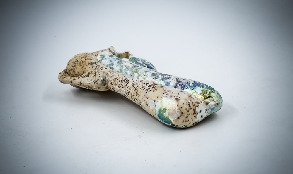This glass bottle for cosmetics features two compartments for a long ivory applicator, allowing for precise makeup application. It includes a certificate of authenticity and necessary export documents, shipped directly from the Holy Land.