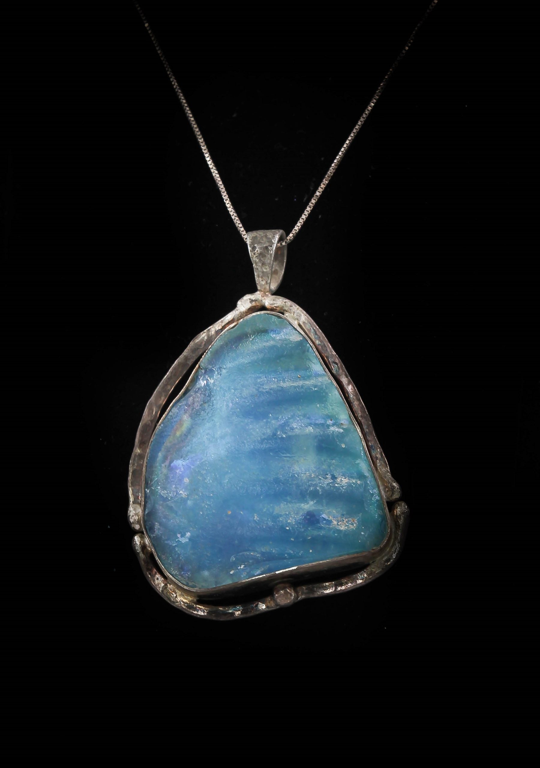 Most of our roman glass jewelry is hand made by our talented artists that shape the silver after taking his time in thinking haw to these beautiful pieces of ancient glass will look nice and unique