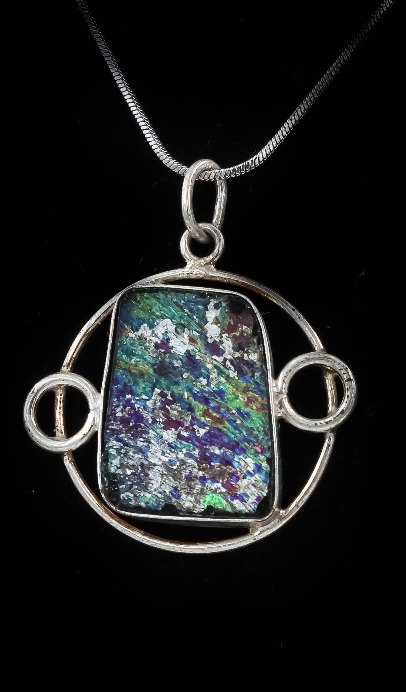 Roman Glass is an ancient glass discovered in archaeological excavation sites in Israel and other Mediterranean countries. The sources of the glass in a piece of Roman jewelry originally belonged to a vase, jug, or vessel. The aging process that the glass has undergone gives Roman glass jewelry its unique attraction.